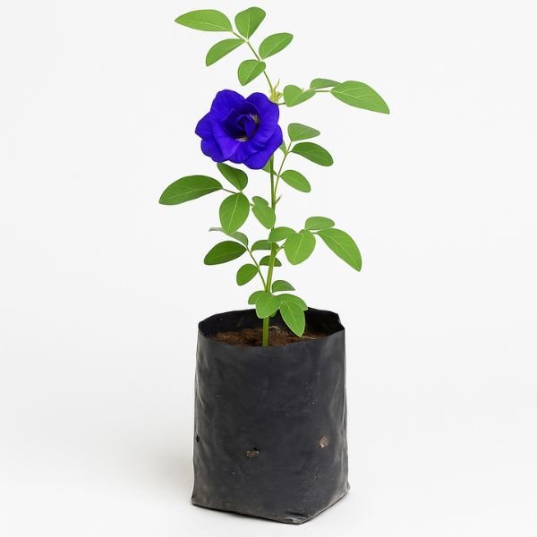 Beautiful Aparajita Double Petal plant with deep blue blossoms. Sacred, medicinal, and easy to grow – perfect for home gardens and temple areas. 🌿